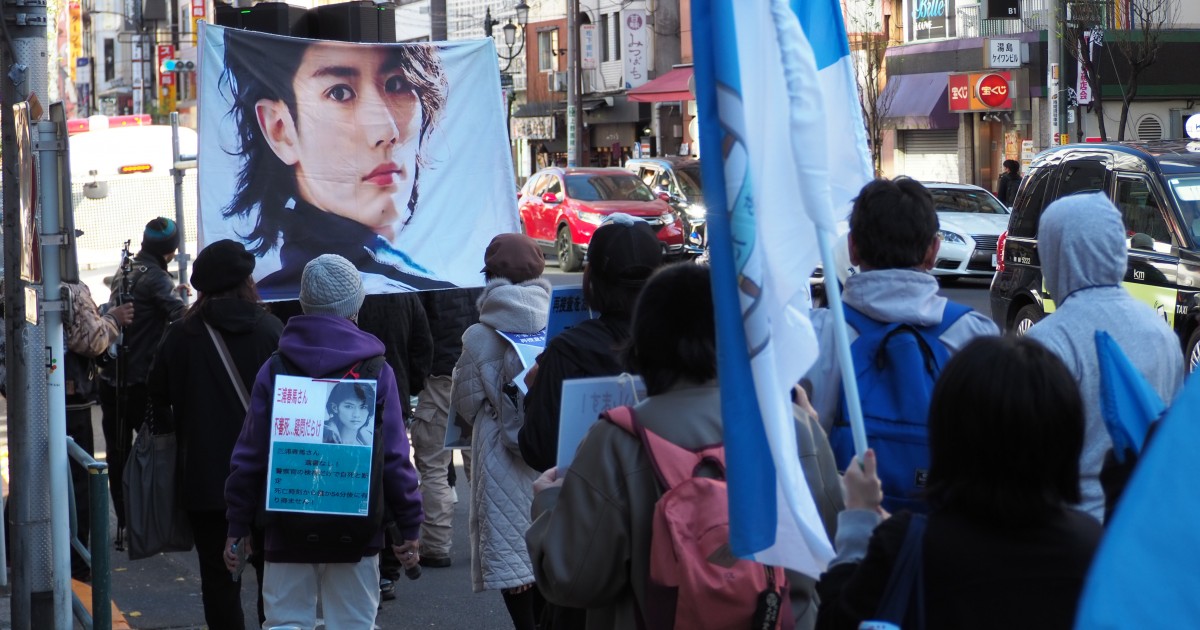 2月1日午前10時半。港区南麻布の狭い歩道で、50人ほどが集まって声を上げ始めた。