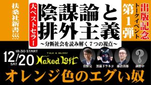 「陰謀論と排外主義」出版記念トークライブ第1弾はネイキッドロフト横浜で12月20日夜に開催され、客席は満員御礼、配信も今年最高売り上げも視野に入るという大盛況でした。